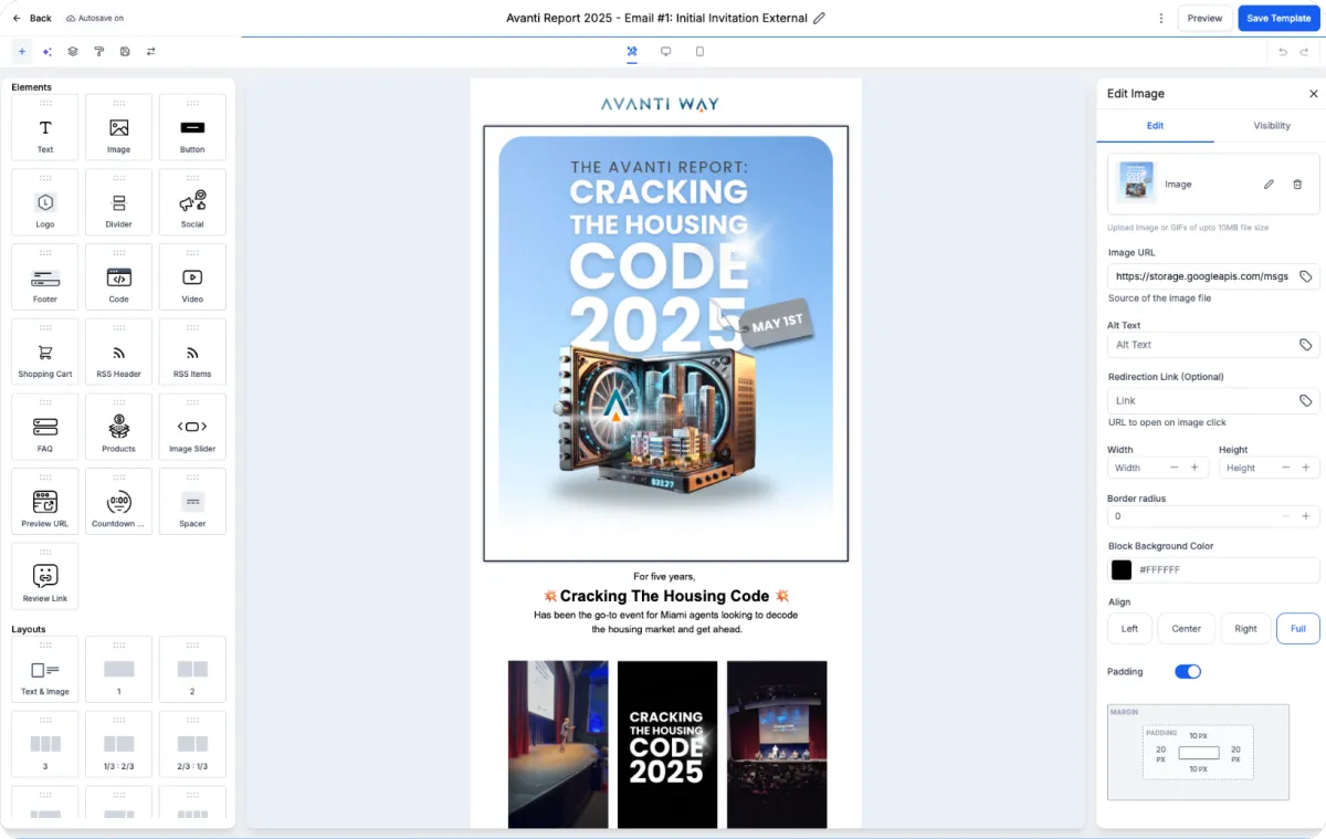 Drag-and-drop builder for newsletters and automated blasts.